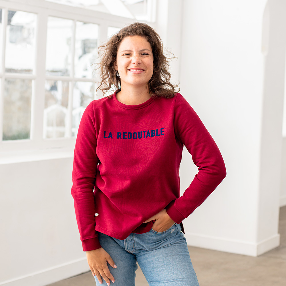 Tu vois ici que le sweat Intrépide est plus orangé que le sweat La redoutable (Le slip français). Le premier a été mélangé avec un peu plus de pigments jaunes pour obtenir un rouge plus chaud.